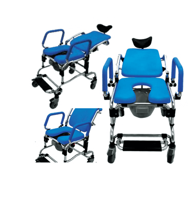- Combines commode, shower chair, and shampoo positioning in one unit